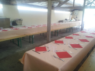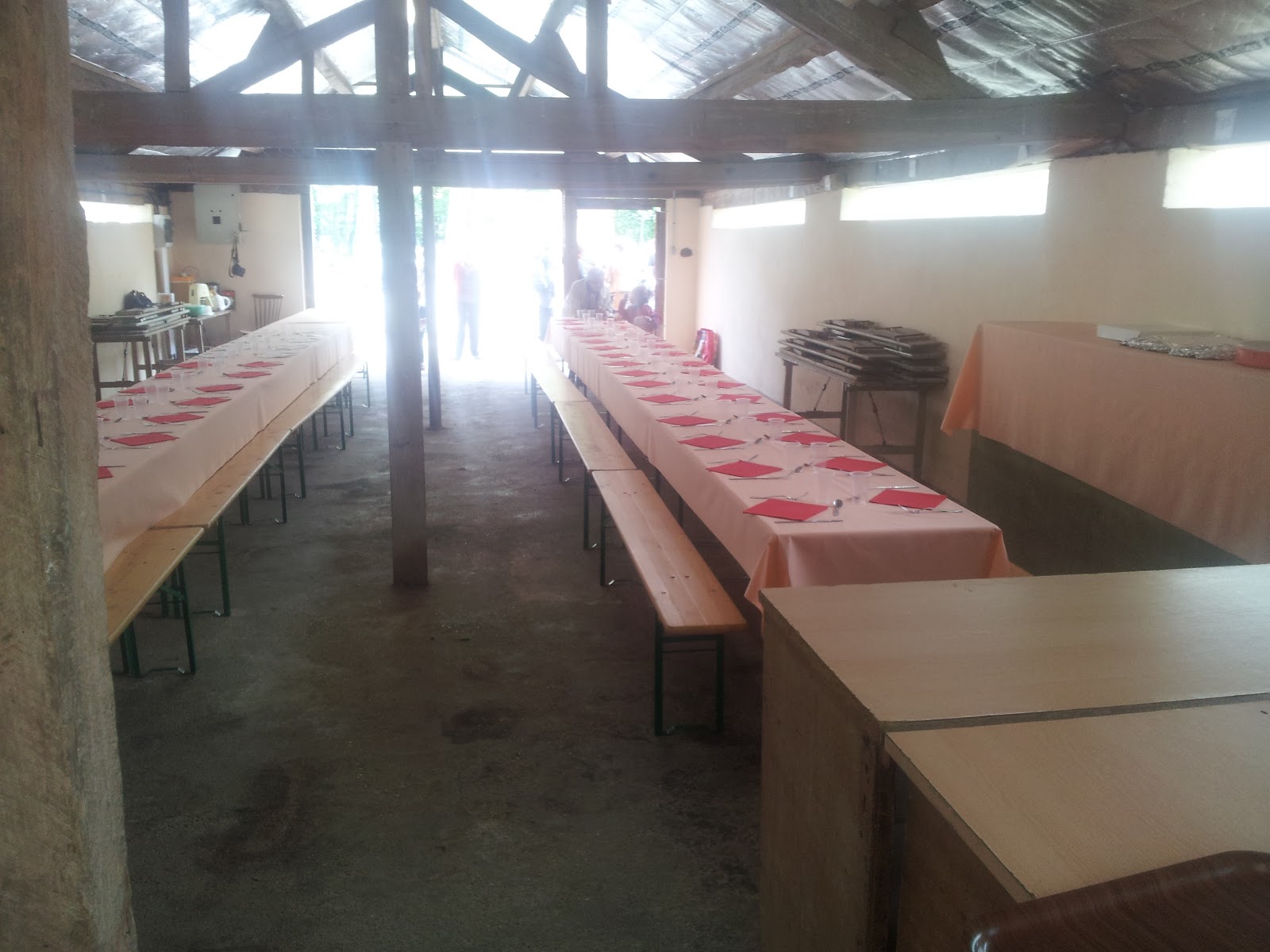 La salle est simple mais très conviviale. Tout le monde est déjà là... à l'apéro !