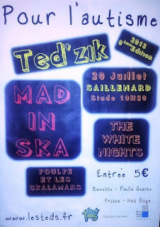 C'est le 20 juillet 2013 à Saillenard (71) que se tiendra pour la 9ème fois le festival TED ZIK au profit de l'autisme.  (plus d'infos sur http://www.lesteds.fr )